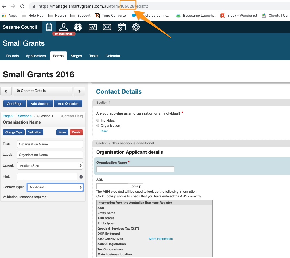 Once the service team have "enabled override" on your form/s, you need to edit the existing application form/s attached to the grant round/s.