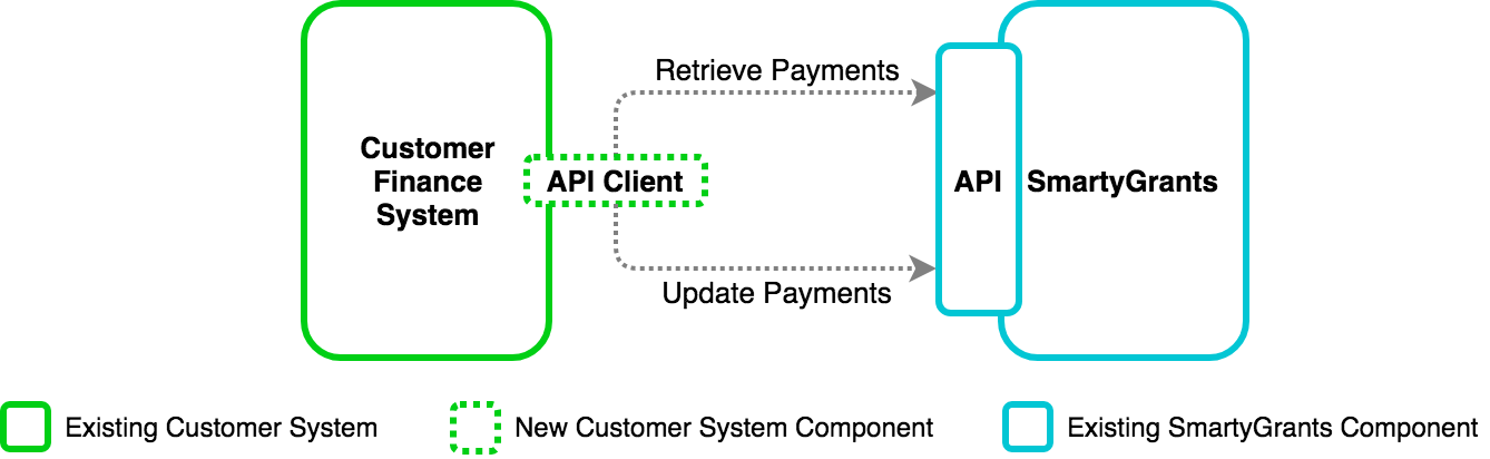 The SmartyGrants Payments API is based on standard web technologies, including JSON/REST and HTTPS. The API is not specific to any finance system. Customers will need to build an API Client that will invoke the SmartyGrants API, either as part of their application, integration layer, or as a stand-alone component. A developer guide can be requested from the SmartyGrants Support Team. We can provide a trial API key that can be securely retrieved via the Account Settings.