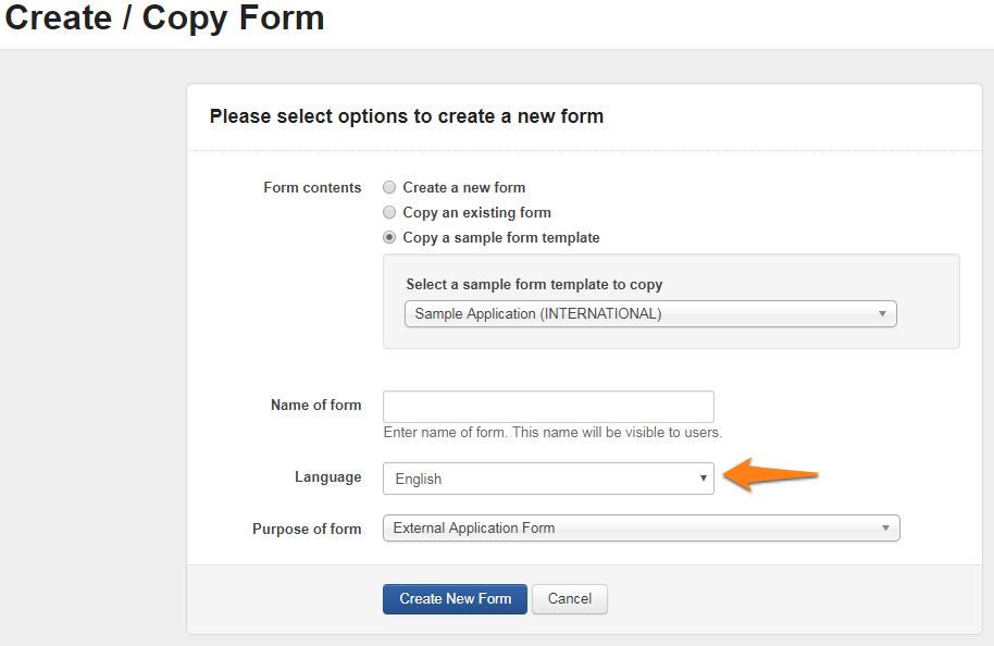 Once the form is built, you will need to attach the application form to a grant rond. If you anticipate responses will be in more than one language, you will need to open a round for each language you would like the form elements displaying in. For example, if you are anticipating responses in both French and English, you will need to have two grant rounds open. You will have two separate forms, one with English questions and another with French questions.