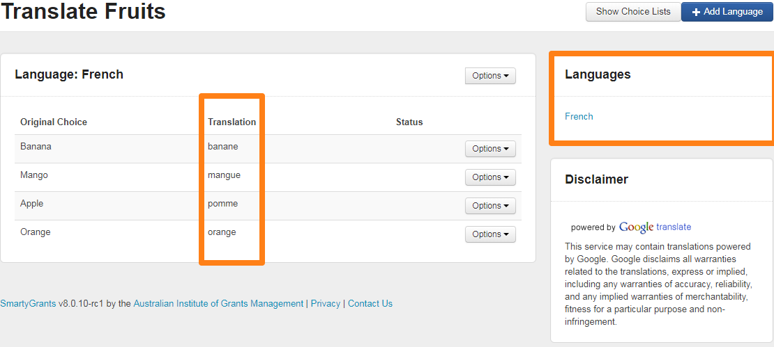 Manage users can enter a translation for choice values stored in SmartyGrants.