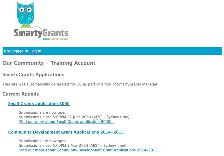 This applicant site will have the look and feel (skinning) of your own website but is hosted by SmartyGrants.