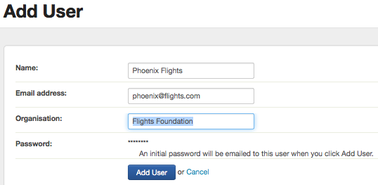 - Click on Add User (The user receives an automatic e-mail with username and password details). Your user is now successfully Added, however, you now need to assign there user access levels.