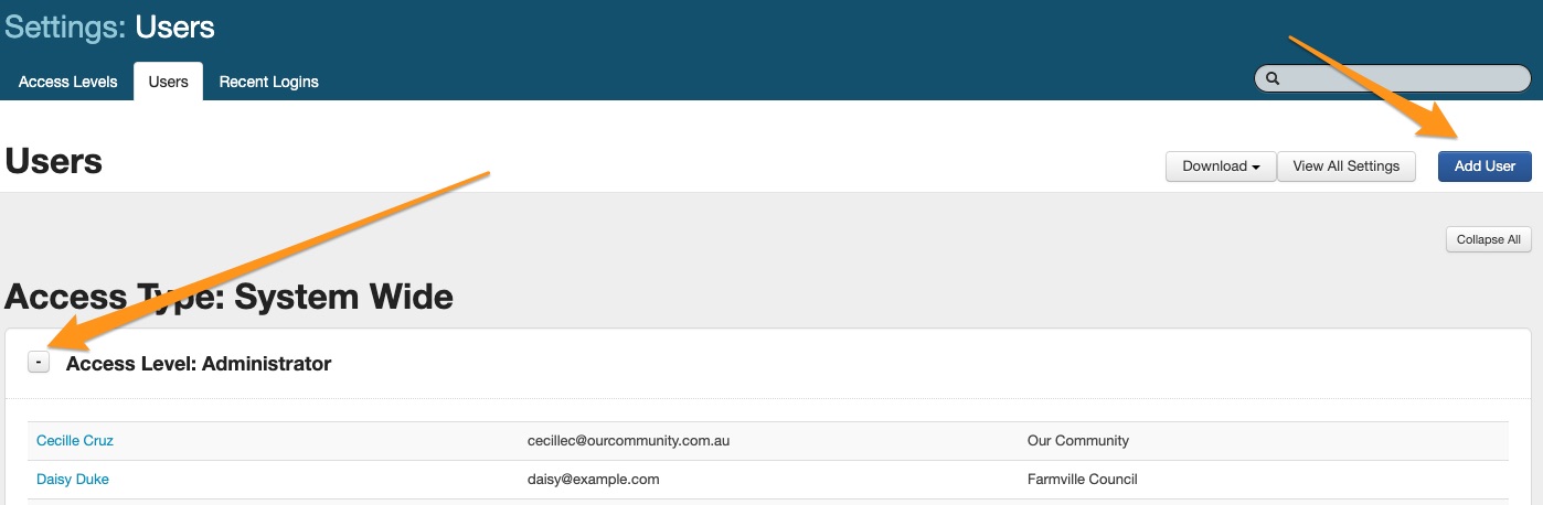 - You may go back in to the users tab at any time and amend, the access type and level.