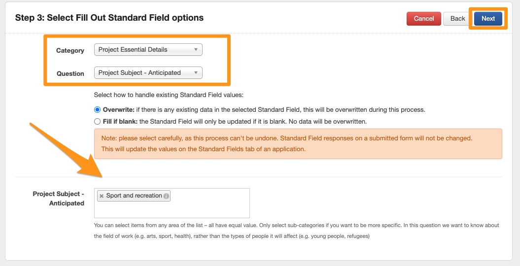 Fill out Standard Field: Fill out a standard field for the selected applications