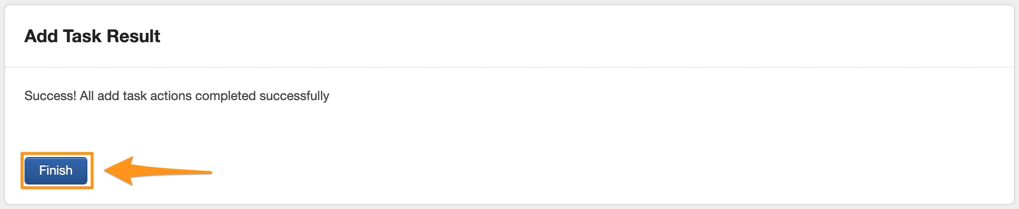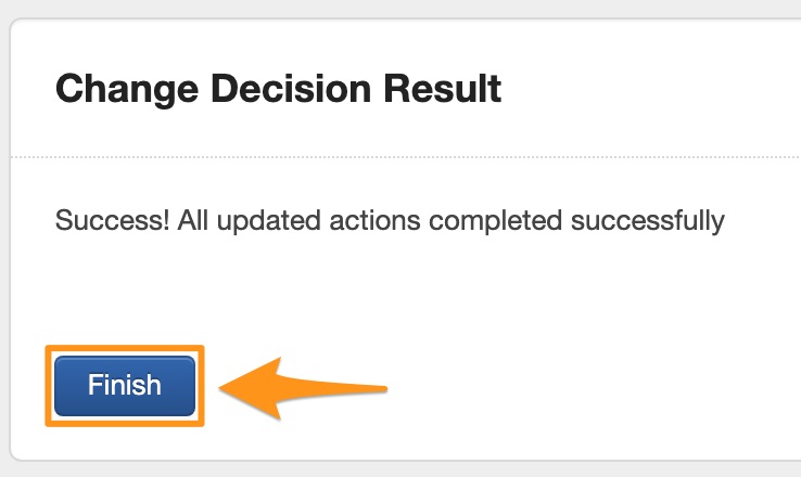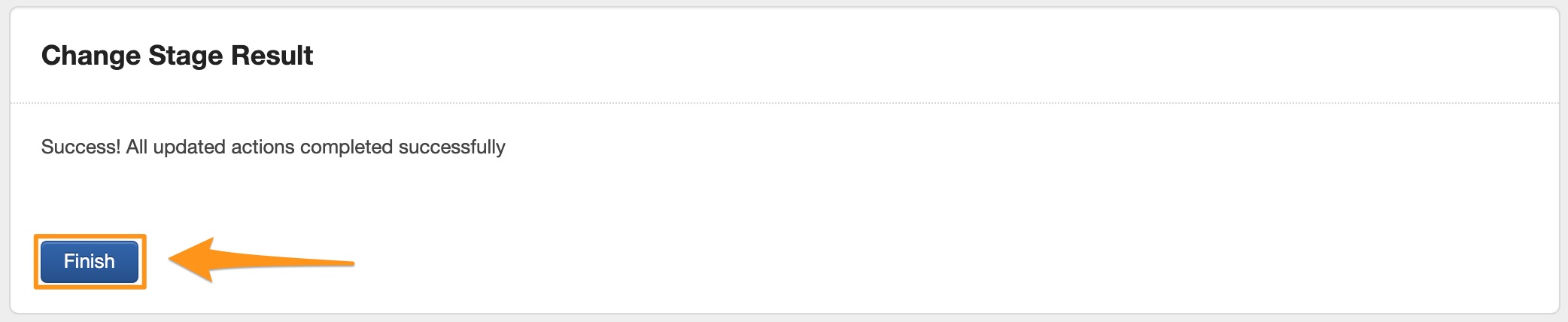 Your action will run the Bulk Update and Confirm the update has run successfully (or any errors will be displayed). Click on the Finish button to return to the Application Filter screen.