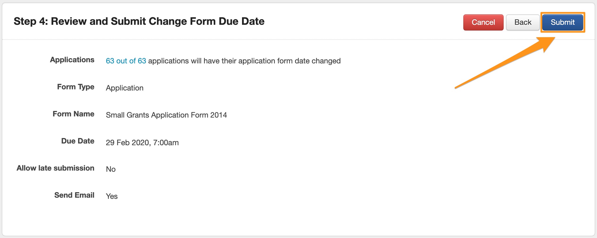 Select the Form Types and Form Name for which the Due Date needs to be changed, the actual due date to be changed to and the associated options. You will need to edit the notification email as required also.