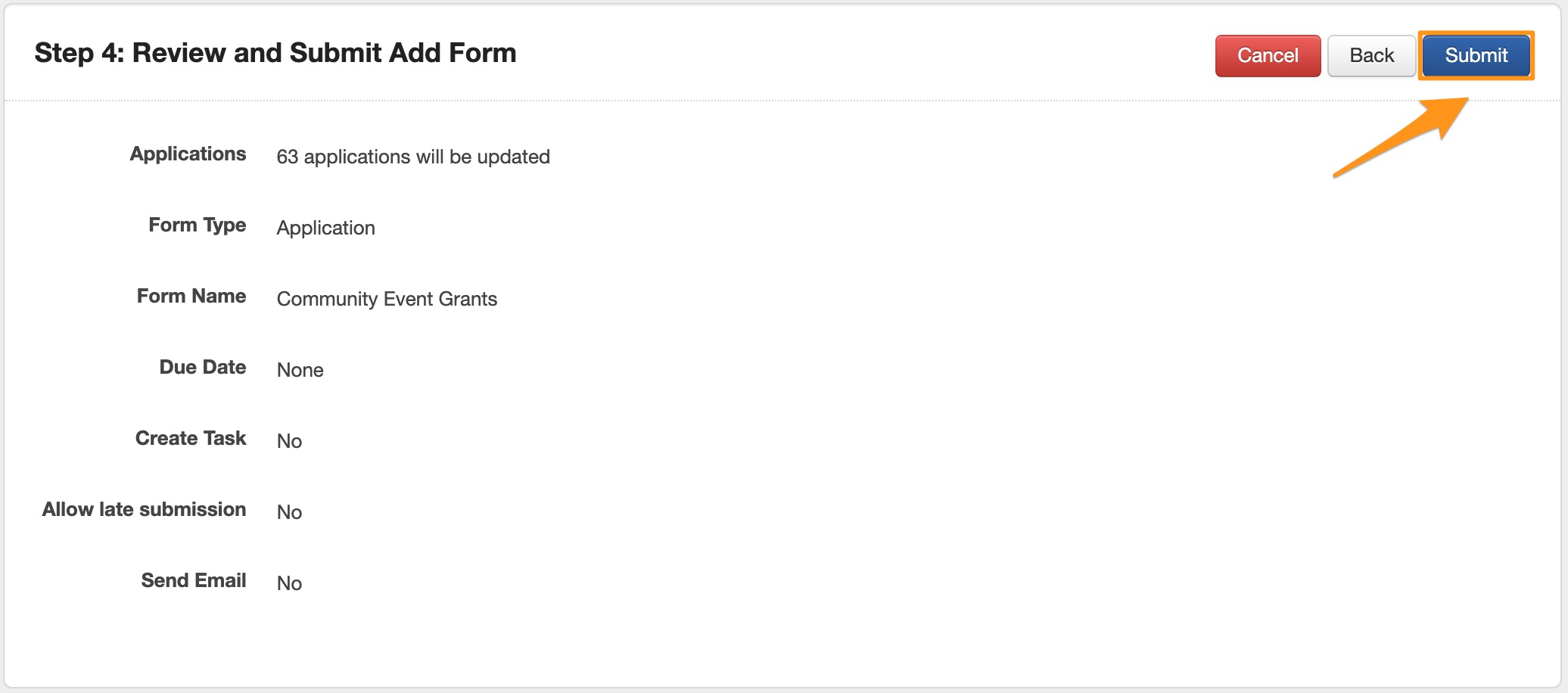 Select the 'Add Form' option and then click the 'Next' button. *Note: You may only apply one bulk update operation to a group at one time.