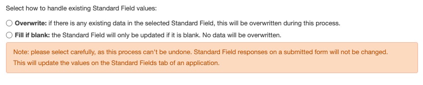Next you should decide if you wish to overwrite the existing data or fill in that field is currently blank