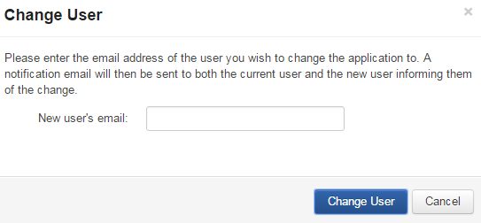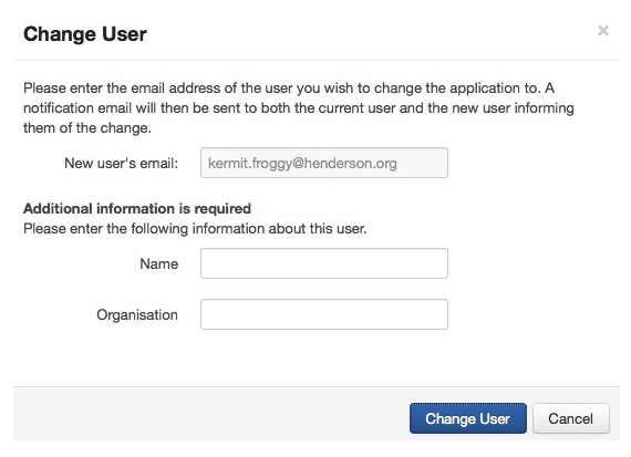 Important: If you are performing a change user request on an application linked to a SmartyFile organisation it is important to verify with them that the new application user is in fact a user of the SmartyFile organisation.