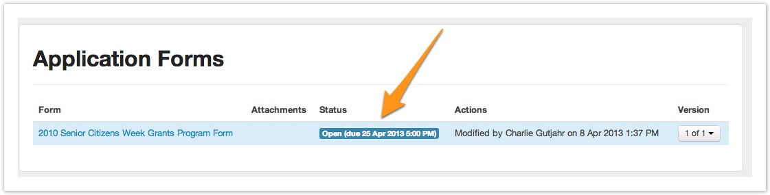 - The applicant can now log in through your applicant site and complete the form by going to their My Submissions page. If the due date and time passes without them submitting the form, they will automatically be prevented from submitting the form.