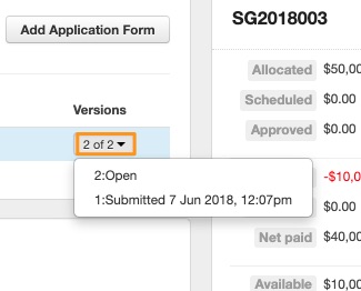 - To view the original version of the form simply select it from the Version drop down menu on the relevant form.