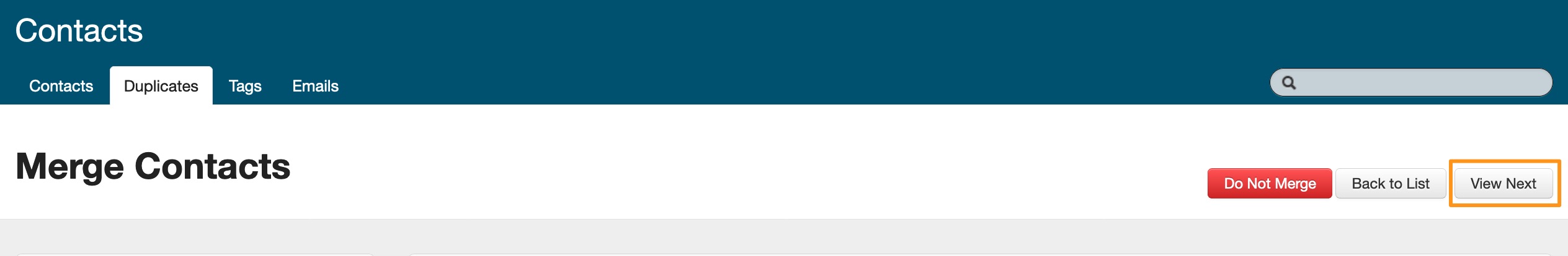 To return to these potential duplicates later without saving, click the View Next button or the Back to List button.