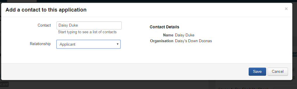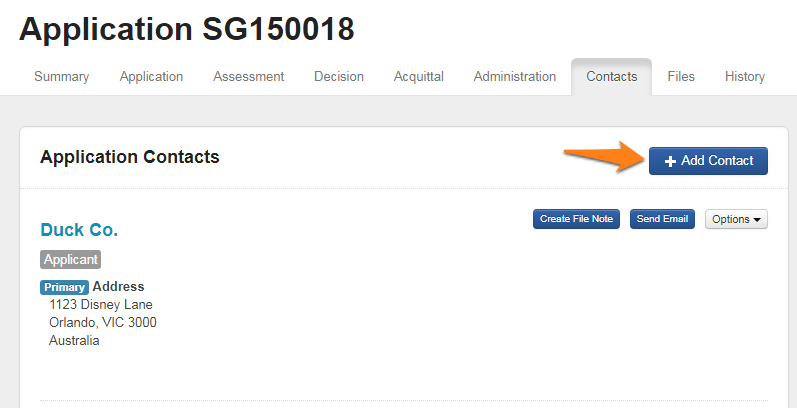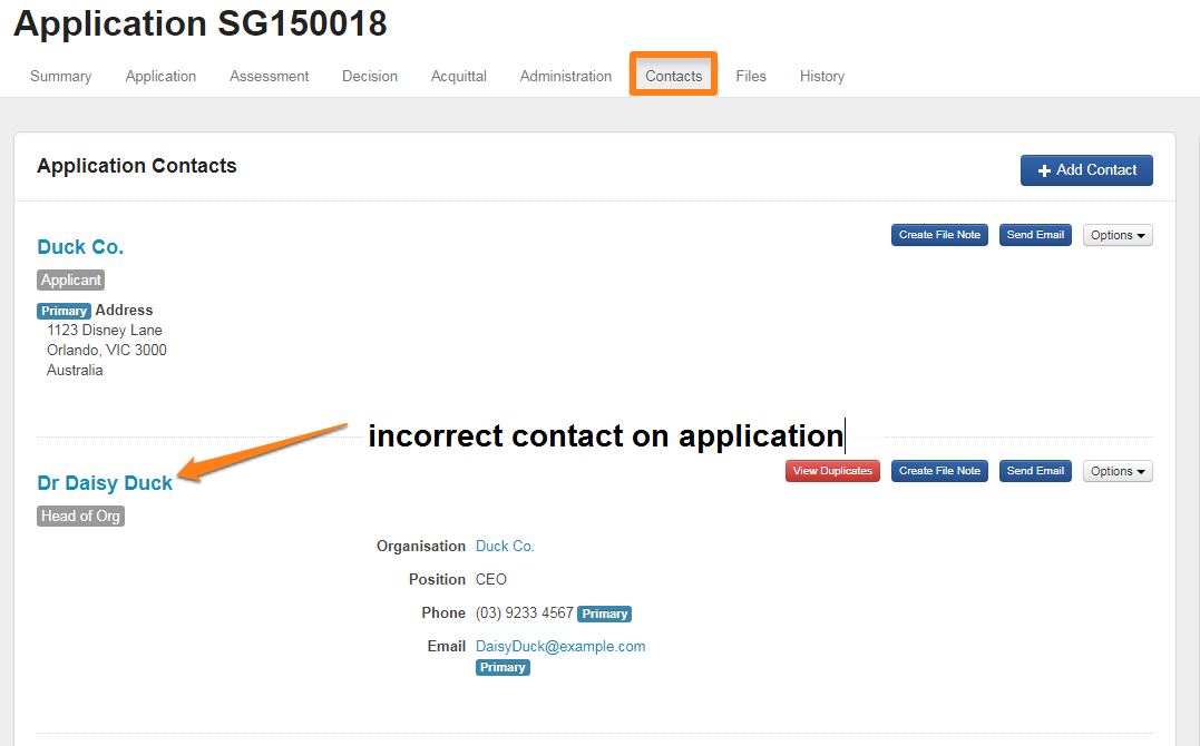 Now that you have removed the incorrect contact from the application, you will need to add the correct contact back onto the application. This is the contact you created in step 1.