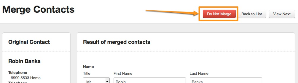 To keep all these entries separate, click the Do Not Merge button at the top right of screen.
