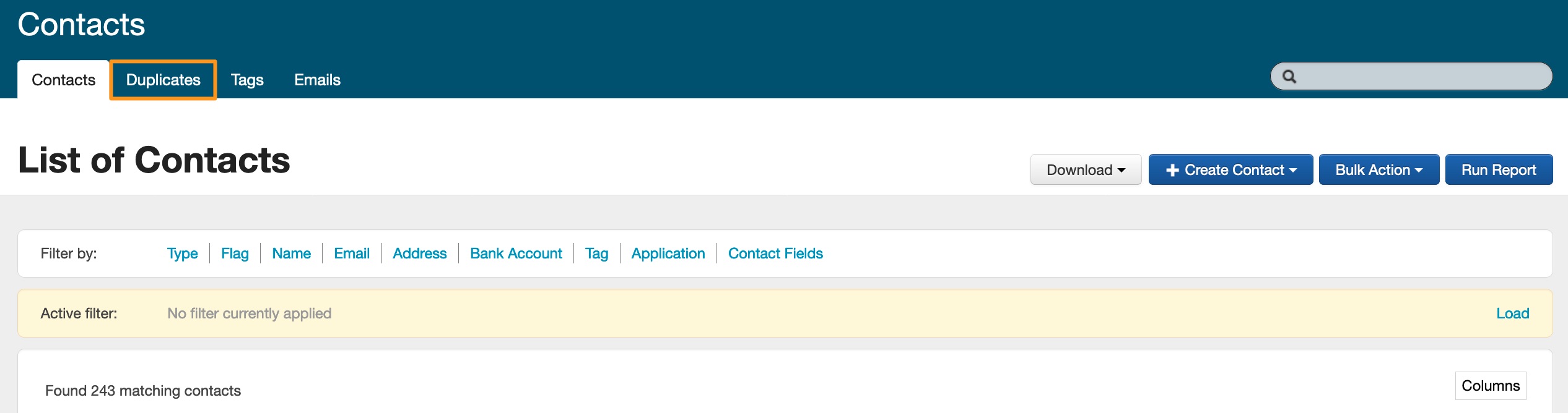 2. Click on the 'Duplicates' tab at the top of the screen.