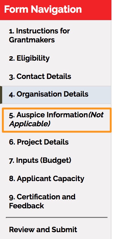 A few weeks later, the form is re-opened for the applicant, as it has been discovered that the applicant organisation is in fact not a registered charity.