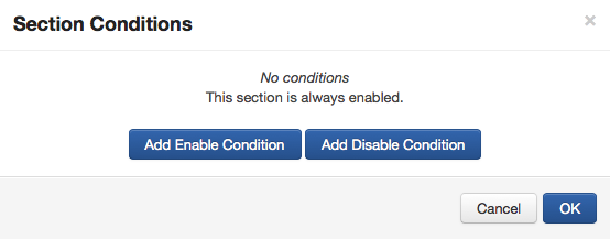 3. Choose to either Enable or Disable the section or page. In the example below we have chosen the enable condition.