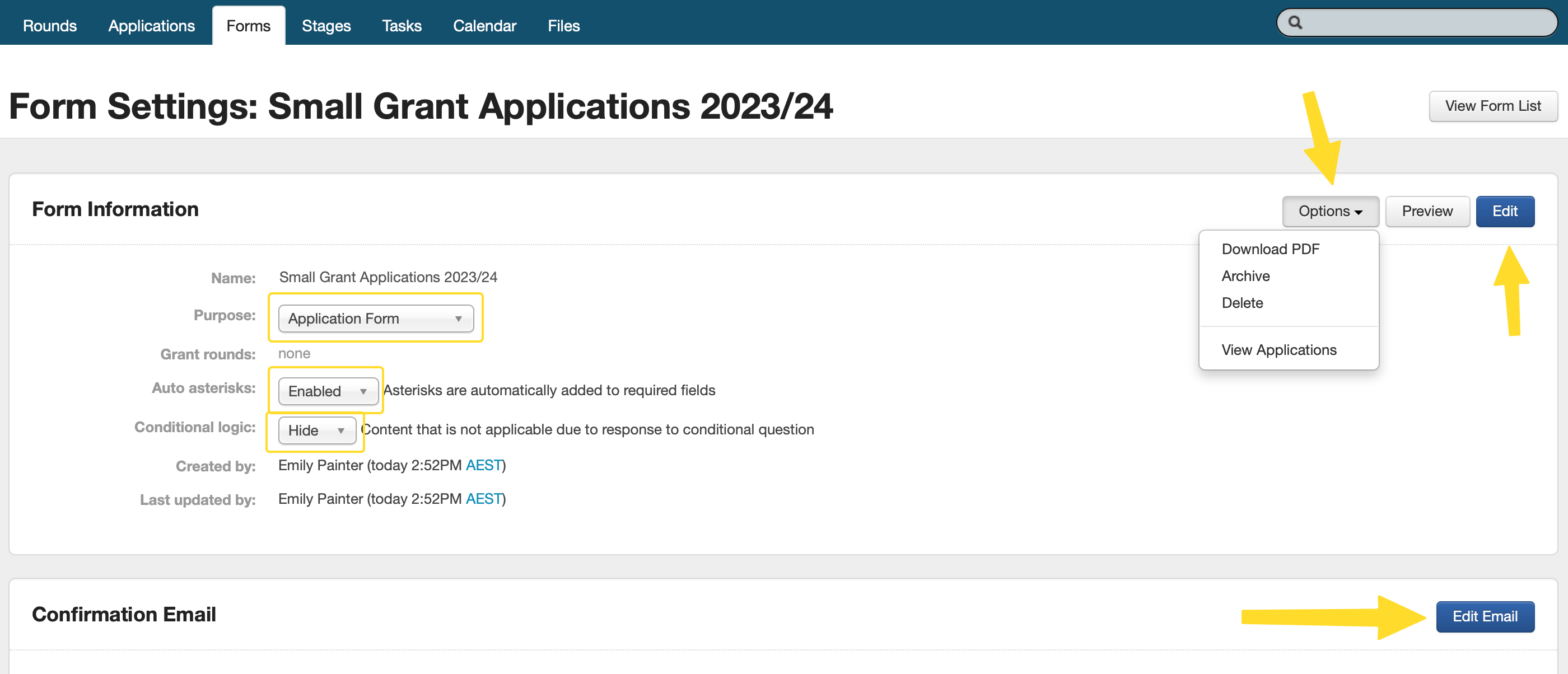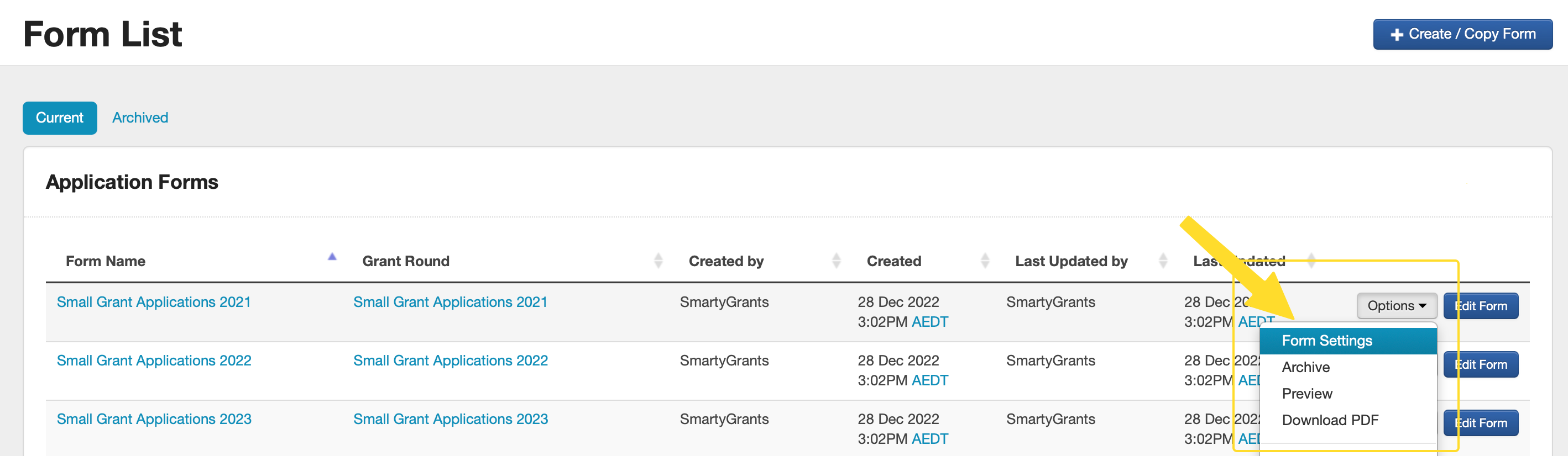 Once a form has been created in SmartyGrants you will see it listed on your programs 'forms' tab or page.