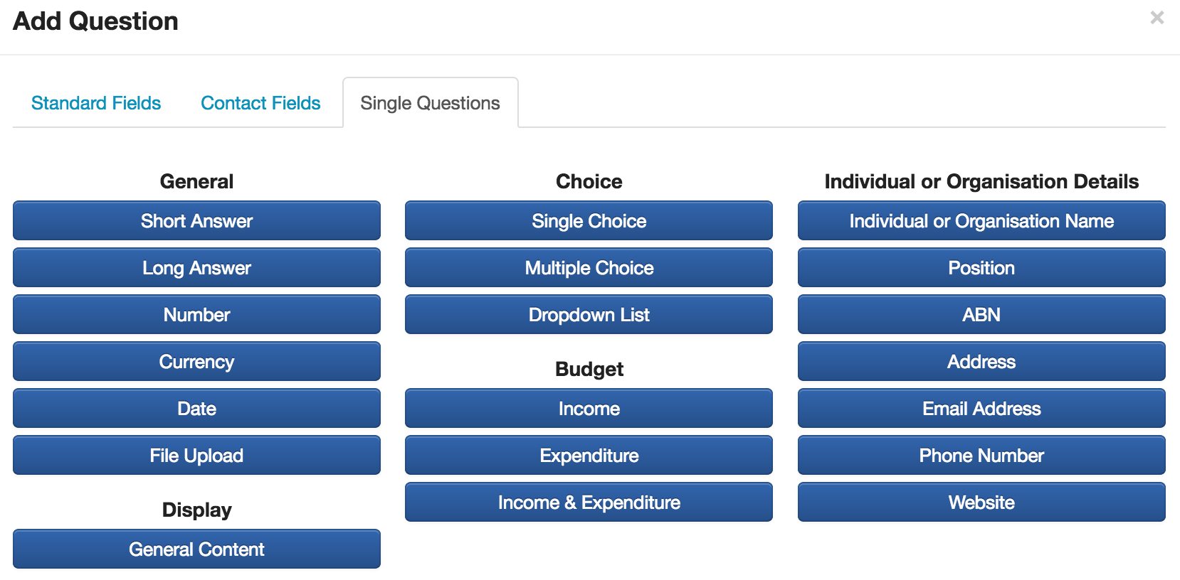 Grids can be created and customised to feature a variety of question types. This can be useful for collecting other types of information from your applicants or customising budget grids that are more complex than the set default budget grids.