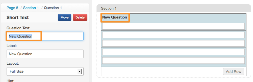 In this example, a short answer question has been added. Label your question in the left hand panel.