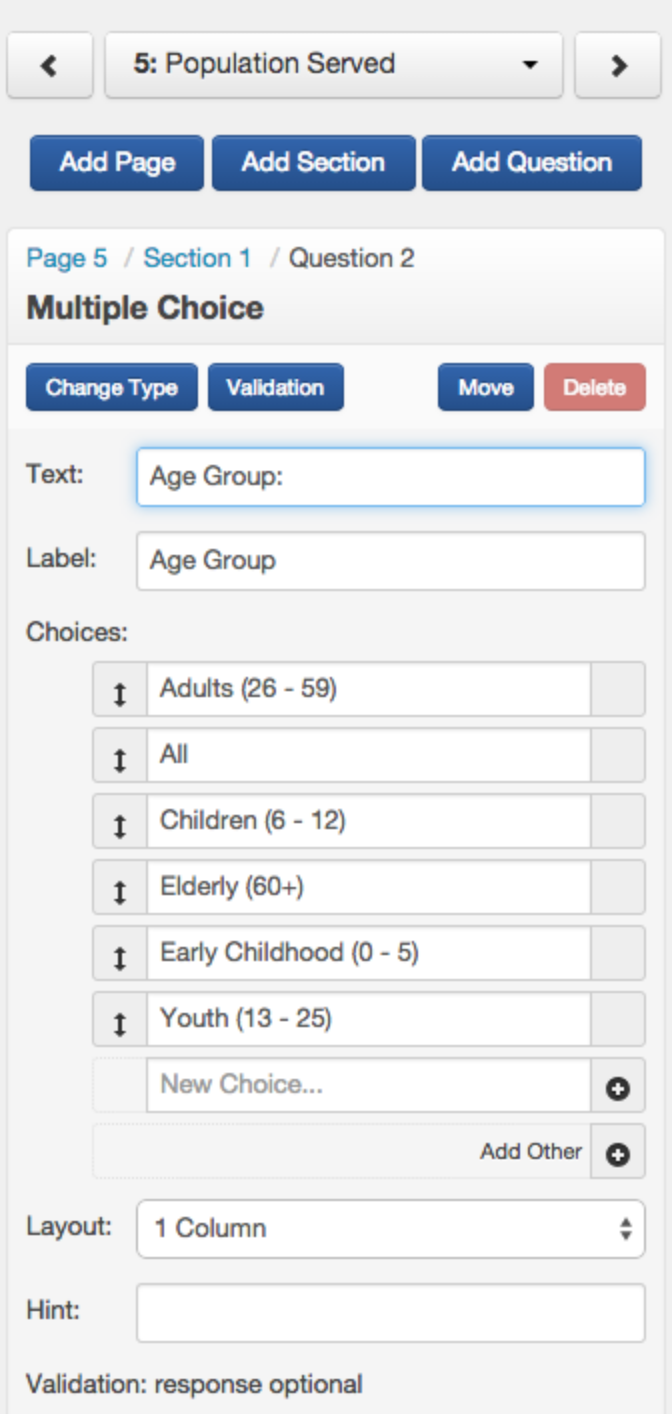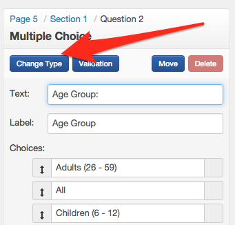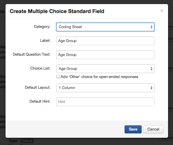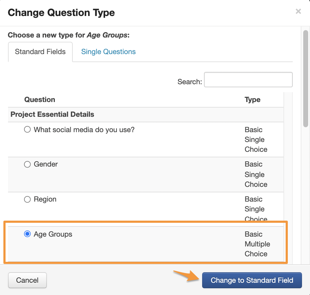 Below is an example of upgrading the question Age Group (shown below) to be a standard field.