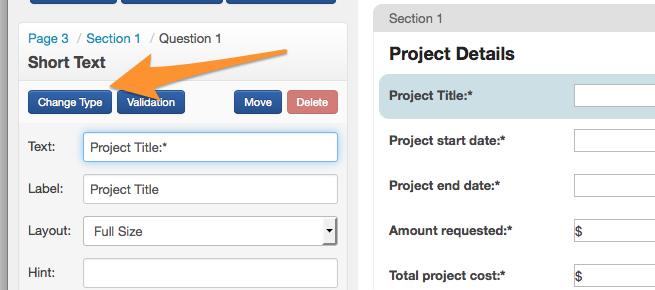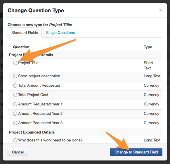 Select the question in the form editor that you wish to upgrade to a standard field and then click on Change Type