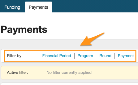 Users with access to Funding and Payments are also able to filter the Payments list. The filters that are available are . . .
