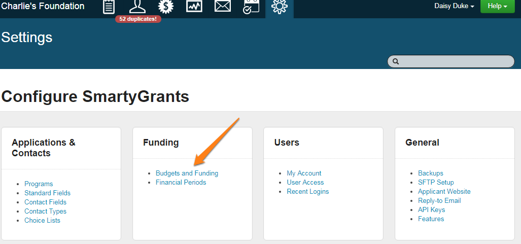 The first thing you need to do is enter your SmartyGrants account and set-up your financial periods, funding sources and budgets: