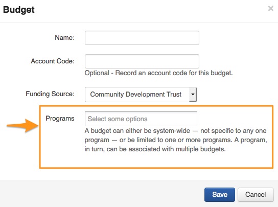 If a budget/s is linked to a program then only those budget/s will appear when a user allocates funding within that program (i.e. budgets accessible across all programs will not appear). All other budgets are still made available across other programs. In other words,