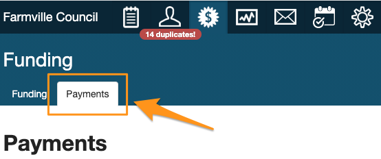 Once in the Funding and Payments screen, click on the 'Payments' tab