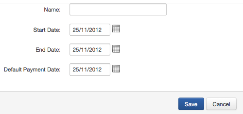 Give your financial period a Name - for example: "2012/2013" or "2012"