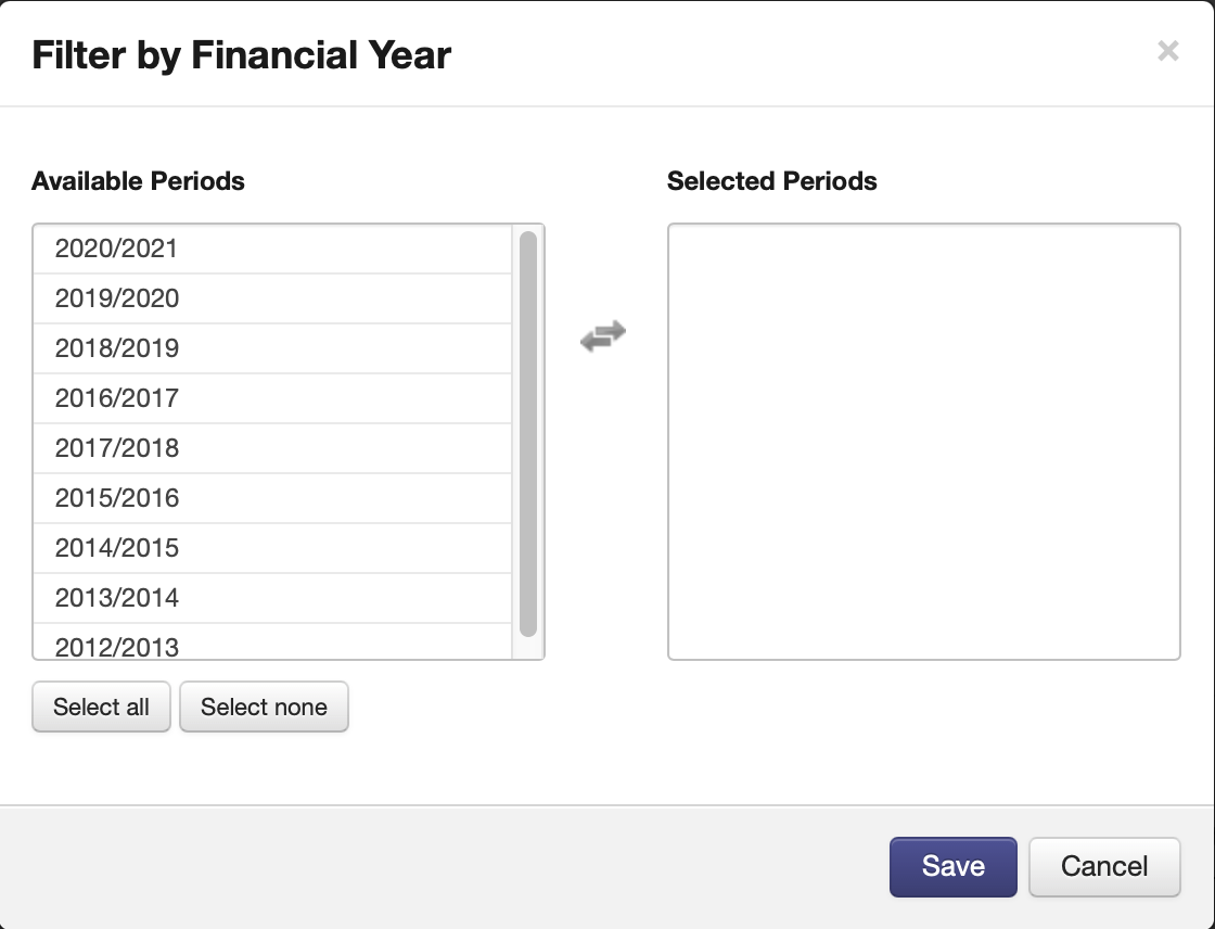 Financial Period - allows the User to see all payments that have been created for one or more selected Financial Periods