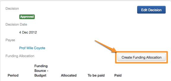 Click on the blue 'Create Funding Allocation' button.