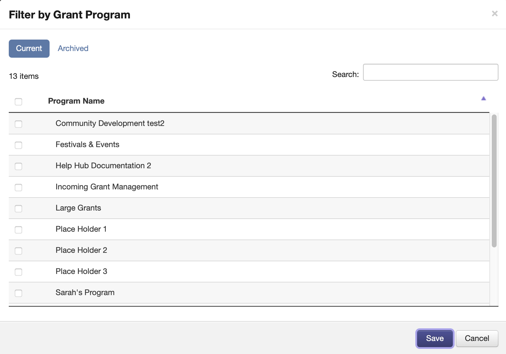 Program - allows the User to see all payments that have been created for one or more selected Programs