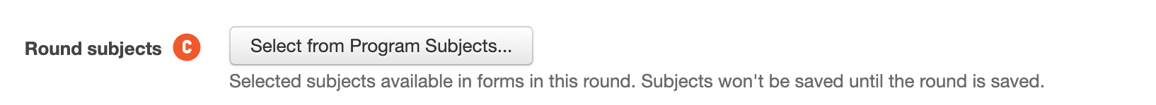 7. Edit the Round Subject. You are also able to define the CLASSIE subjects that are available to be selected in the CLASSIE Subject fields when creating a Round. As with the Project beneficiaries, should the program the round is being created within already have the subject selected, these same subjects will be all that are available in any rounds created in the program. If there are no subjects set at program level, you are able to set the subject/s at this stage and they will be applied to the individual round. For more information on round subject, please see here.