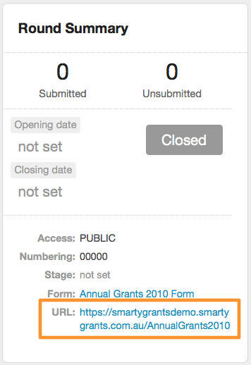 SmartyGrants is an online system and uses URL (Web Page Links) to manage your account, your applicant website and your grant rounds.