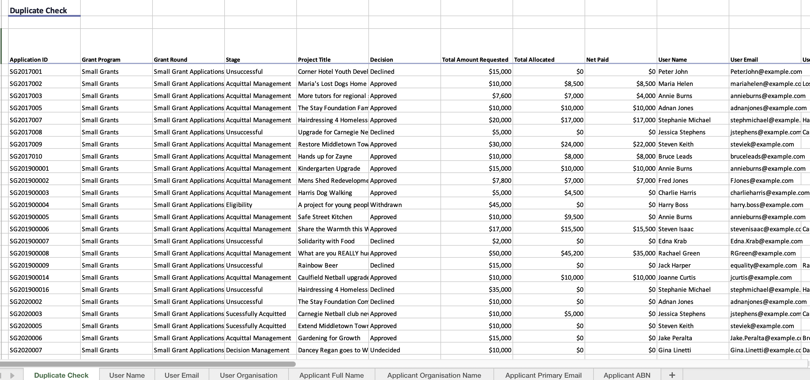 This template is an application based, multi-program report that identifies duplicate Account and Contact details within Applications themselves.