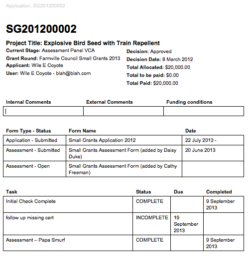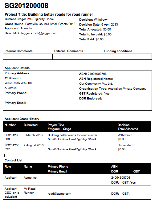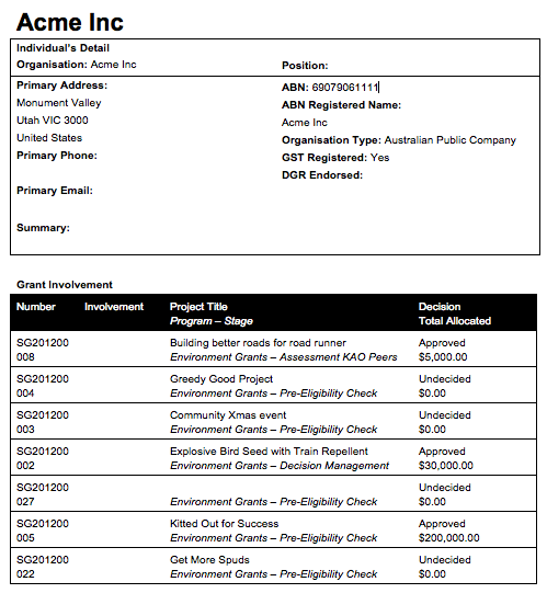 The SmartyGrants team has done some of the hard work for you and provides you with a set of Default Templates. These templates may suit some of your reporting needs and can be quite handy indeed. You will find these templates in the reporting section of the system and will be sitting waiting for you to select when you retrieve data generating a new report.