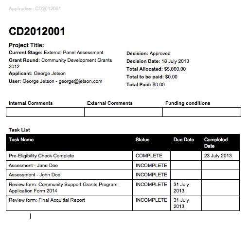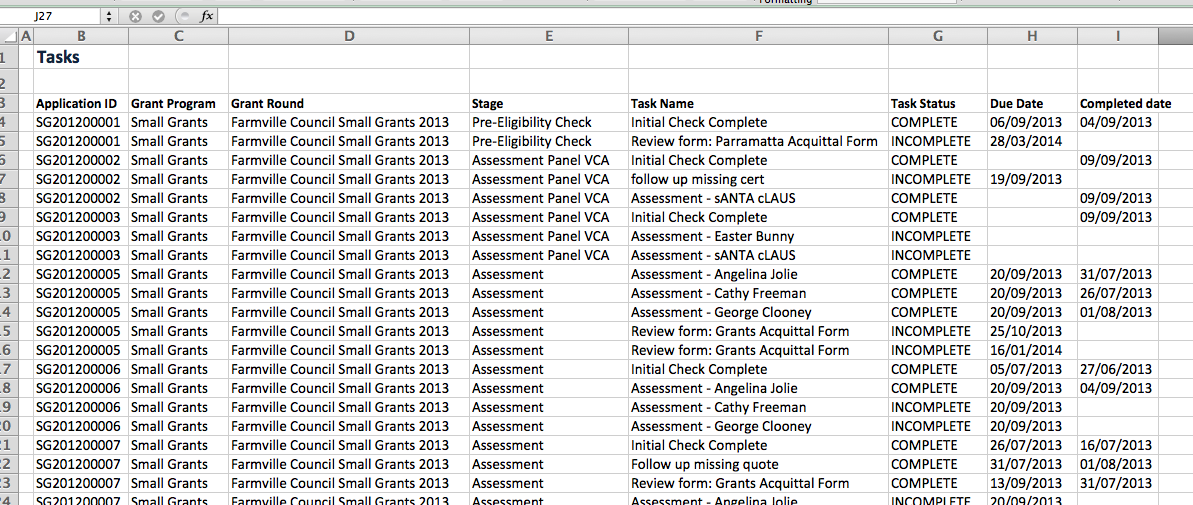 A list of the tasks assigned to each application. Available in Excel or Word.