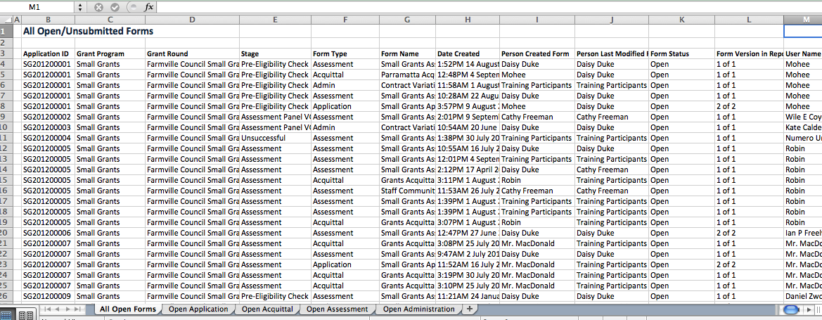A list of all forms that are open or unsubmitted on your applications. Available in Excel.