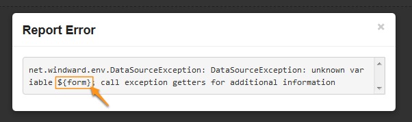 The ${form} error refers to the fact that a form tag (i.e., a tag that relates to data in a particular application, acquittal, assessment or administration form) has been moved outside the form start and end tags. For example, the tag for the assessors' comments has been copied and pasted into the report, without the form start tag | If you still have the original template, download that and ensure you customise the template within the rules - see templates for more information. If you have replaced the original template, you will need to create a new template and reselect the fields you want to include - then ensure you customise the template within the rules - see templates for more information. | |