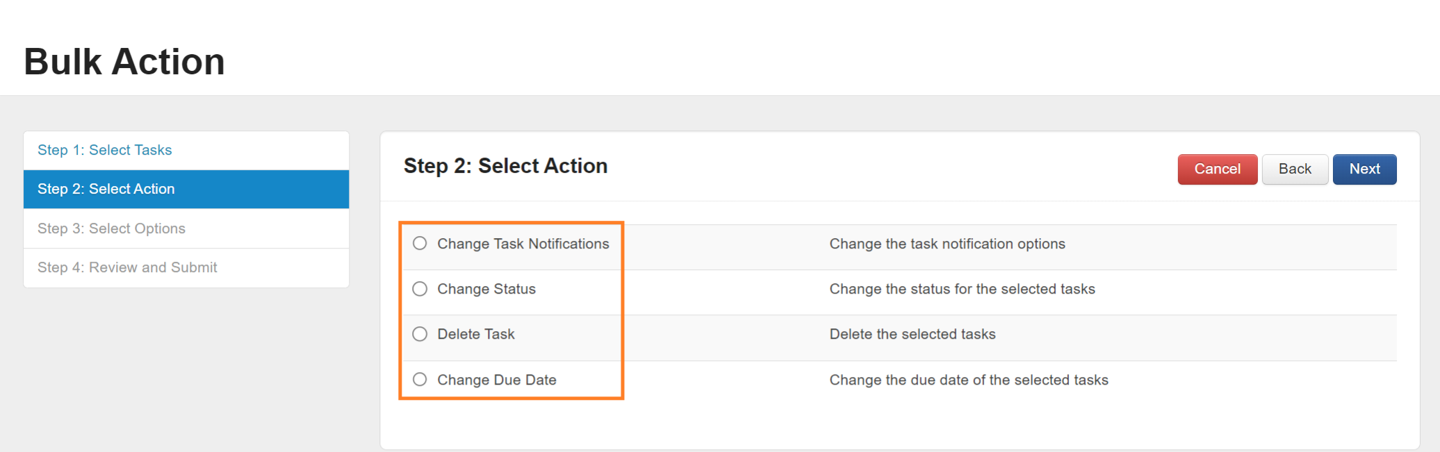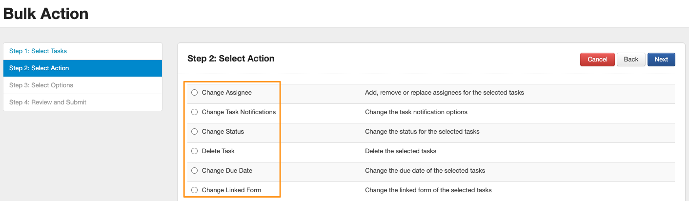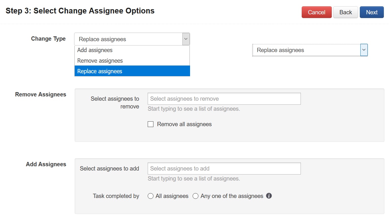 1.Change Assignee: you can add, remove, or replace task assignees in bulk. Replacing an assignee may be useful when a task assignee has left an organisation