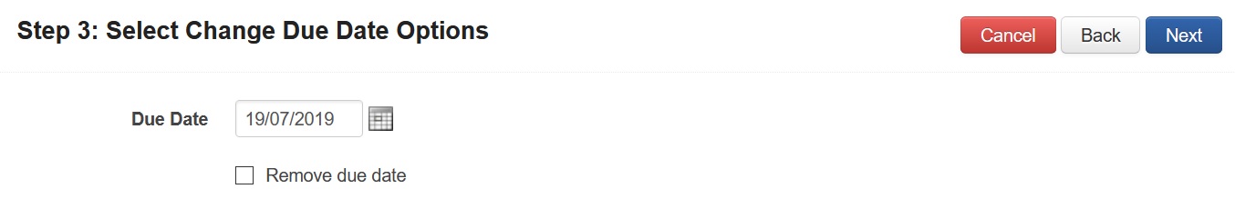 5. Change Due Date: you can change the due date in bulk to give assignees more time to complete their tasks. You can also choose to remove the due date by clicking the checkbox below the date field. Removing the due date may be useful when the deadline for multiple tasks is no longer applicable