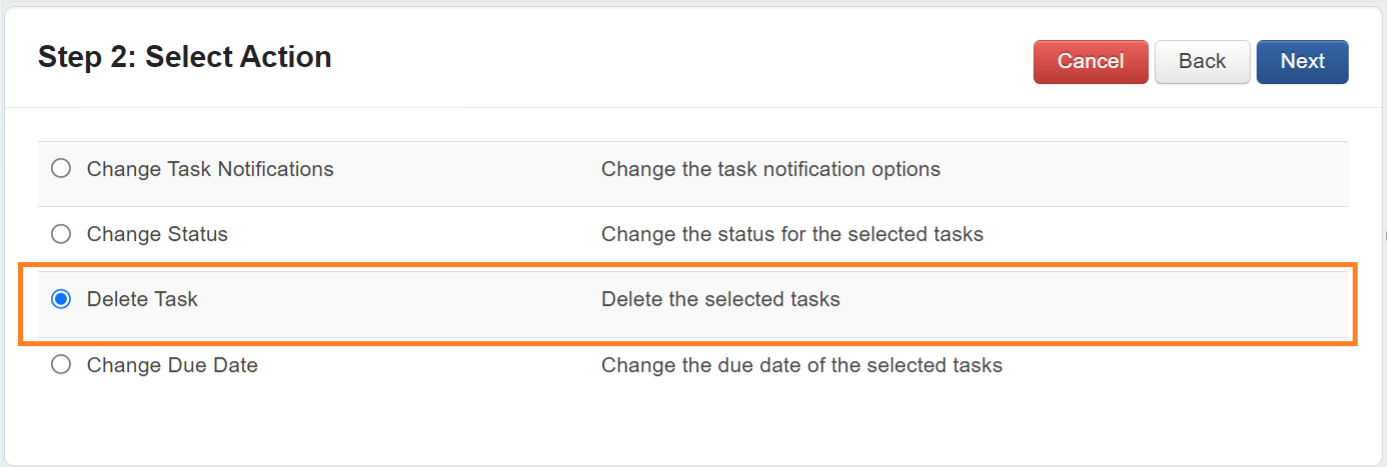4. Delete Task: you can delete tasks in bulk. Deleting tasks in bulk might be useful to remove older tasks that no longer need to be kept in the tasks tab